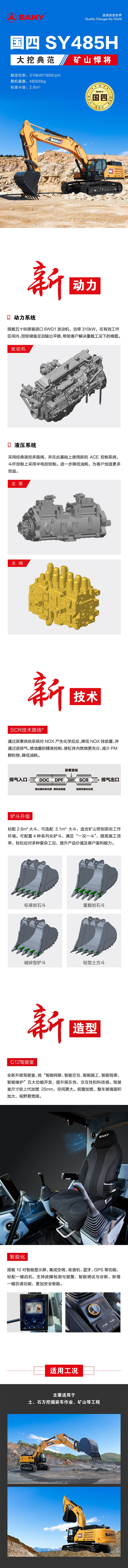 | 主要參數 | 整機重量:48500kg 斗容:2.6m3 功率:310/1800KW/rpm |